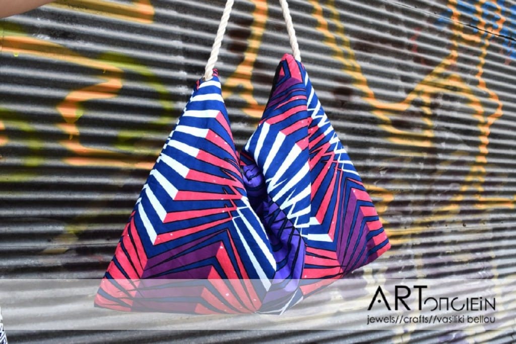Τέλος, η τσάντα που έχουμε ερωτευτεί και που θα κρατάμε όλο το καλοκαίρι, από την πόλη μέχρι την παραλία, είναι χειροποίητη και το ύφασμα της χαρακτηρίζεται από μοτίβο σε έντονα χρώματα με ethnic στυλ (Vinge Ρroject, 72 €).